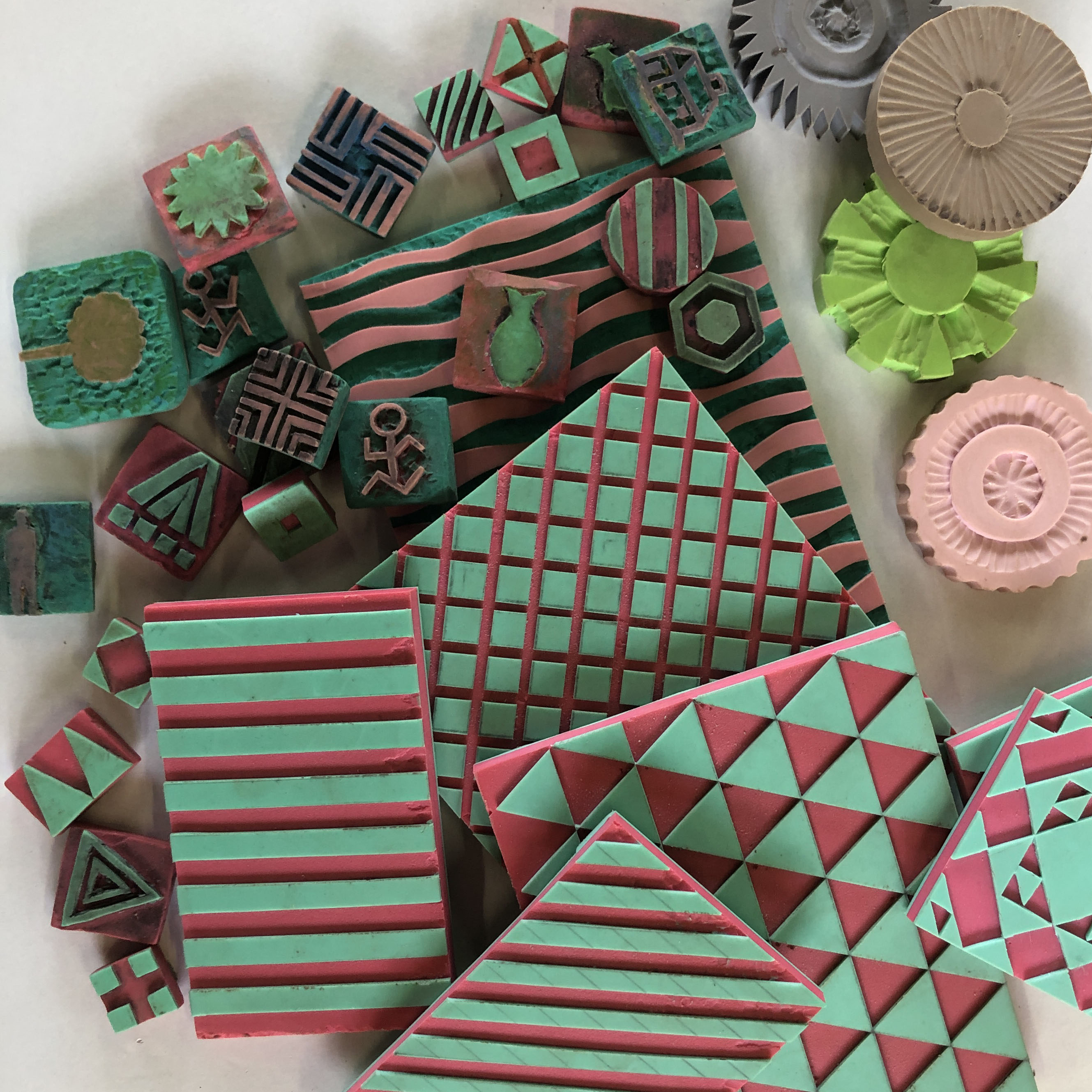 Sugestões de pesquisa: pottery textures; pottery stamps; pottery wash; photopolymer stamp making; carving rubber stamps
